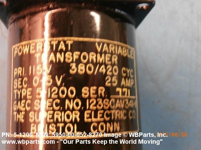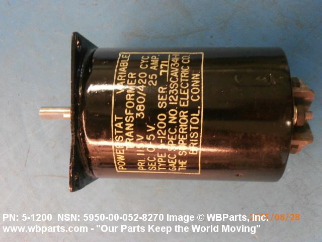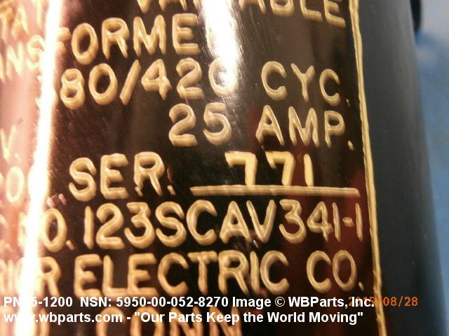 5950-00-052-8270 A transformer which incorporates the primary and secondary functions into a single winding, which is common to both input and output circuits, and is designed to change the relationship of volts and amperes between the entire winding and its taps. Includes multiple winding transformers of like design and items in which a variation of the turns ratio or inductive ratio of inductive coupling is accomplished by connection to fixed terminals. Also, includes items having a provision for mechanically changing the turns ratio in progressive increments, by means of a shaft, voltage taps, ratio adjuster, or devices of similar design. Excludes TRANSFORMER (1), POWER; TRANSFORMER (1), PULSE.20259500022Coils and Transformers61200044Transformers: Distribution and Power Station