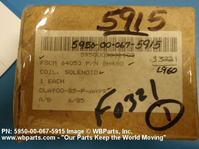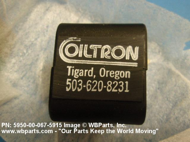 5950-00-067-5915 An item generally consisting of one or more turns of wire or similar conductive material (in special cases it may be considered as a partial turn). It is specifically designed to concentrate magnetic flux generated by the flow of an electric current, to induce in itself an electromotive force, and to add or subtract inductive reactance in a circuit. It may include tuning devices, integral resistors and capacitors; however, excludes FILTER (as modified). For coils wound on resistors which are designed to be inserted into the circuit of a radio frequency stage to suppress high frequency parasitic oscillations, see SUPPRESSOR, PARASITIC..