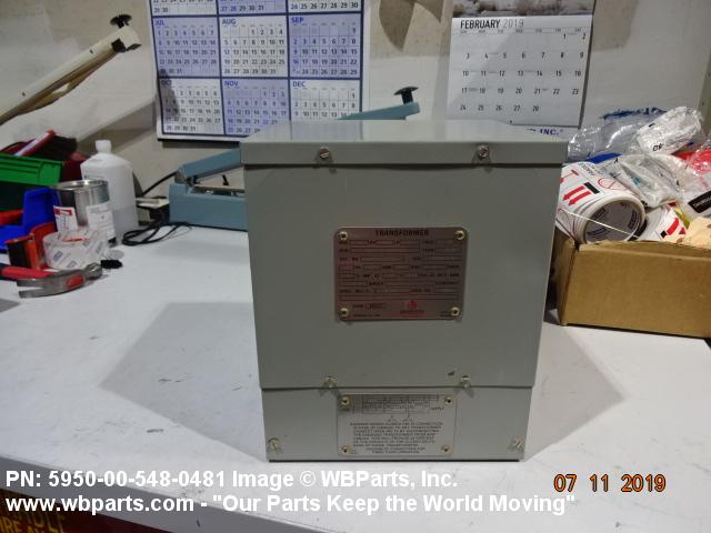 5950-00-548-0481 A transformer consisting of one or more primary winding(s) and one or more secondary winding(s). It may be designed for direct connection to an alternating current source for purposes of changing the secondary volts and amperes or designed to eliminate metallic interconnection between circuits in an overall one to one voltage ratio, with or without additional output windings, or items designed to automatically maintain a constant output voltage within specified limits under varying input or load conditions. Also includes items having a provision for mechanically changing the turns ratio or inductive coupling in progressive increments by means of voltage taps, ratio adjuster, or devices oe similar design. For transformers having winding(s) common to both input and output circuits, see TRANSFORMER (1), POWER, AUTOTRANSFORMER. Excludes TRANSFORMER (1), PULSE.20259500022Coils and Transformers61200044Transformers: Distribution and Power Station