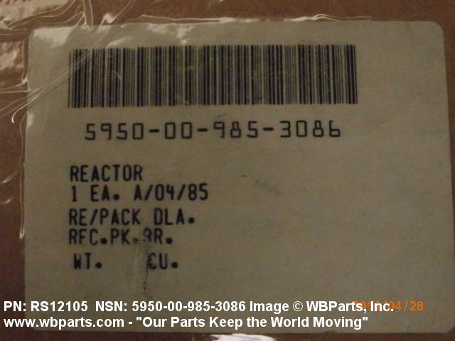 Part Alternates: RS12105, 12103, 5950-00-985-3086, 00-985-3086, 5950009853086, 009853086