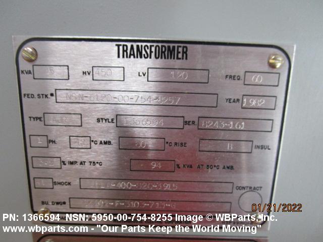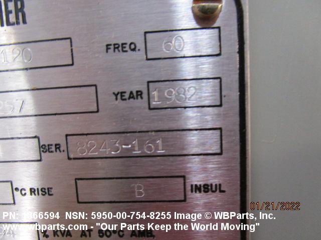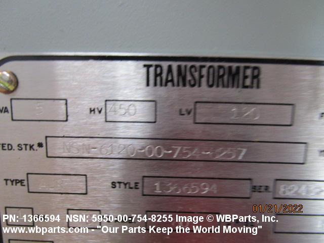 5950-00-986-7309 A transformer consisting of one or more primary winding(s) and one or more secondary winding(s). It may be designed for direct connection to an alternating current source for purposes of changing the secondary volts and amperes or designed to eliminate metallic interconnection between circuits in an overall one to one voltage ratio, with or without additional output windings, or items designed to automatically maintain a constant output voltage within specified limits under varying input or load conditions. Also includes items having a provision for mechanically changing the turns ratio or inductive coupling in progressive increments by means of voltage taps, ratio adjuster, or devices oe similar design. For transformers having winding(s) common to both input and output circuits, see TRANSFORMER (1), POWER, AUTOTRANSFORMER. Excludes TRANSFORMER (1), PULSE.20259500022Coils and Transformers61200044Transformers: Distribution and Power Station