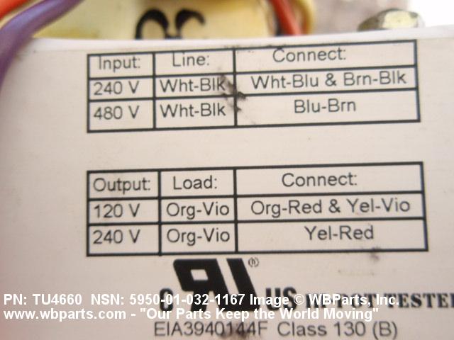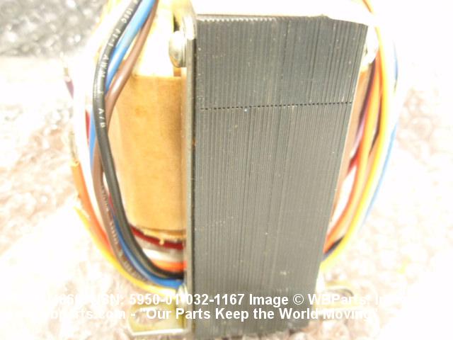 5950-01-032-1167 A transformer consisting of one or more primary winding(s) and one or more secondary winding(s). It may be designed for direct connection to an alternating current source for purposes of changing the secondary volts and amperes or designed to eliminate metallic interconnection between circuits in an overall one to one voltage ratio, with or without additional output windings, or items designed to automatically maintain a constant output voltage within specified limits under varying input or load conditions. Also includes items having a provision for mechanically changing the turns ratio or inductive coupling in progressive increments by means of voltage taps, ratio adjuster, or devices oe similar design. For transformers having winding(s) common to both input and output circuits, see TRANSFORMER (1), POWER, AUTOTRANSFORMER. Excludes TRANSFORMER (1), PULSE.20259500022Coils and Transformers61200044Transformers: Distribution and Power Station