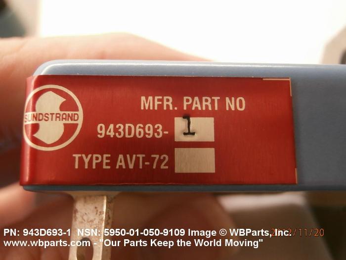 Part Alternates: 16VE0310031, 16VE031003-1, 943D6931, 943D693-1, 5950-01-050-9109, 01-050-9109, 5950010509109, 010509109