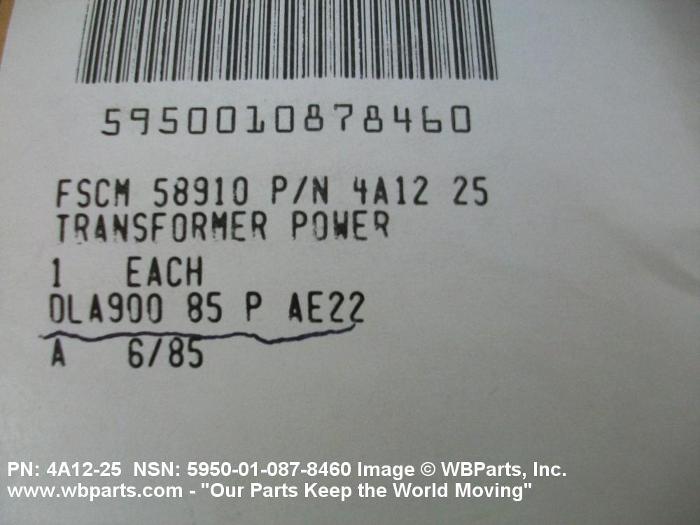 NSN 5950-01-087-8460 4A1225, 4A12-25, 912179
