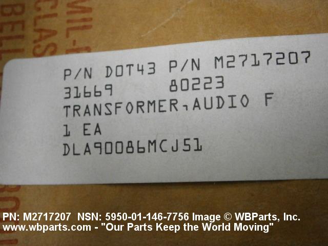 Part Alternates: M27/172-07, M2717207, MIL-PRF-27/172, MILPRF27172, MIL-T-27/172, MILT27172, D0T43, 5950-01-146-7756, 01-146-7756, 5950011467756, 011467756