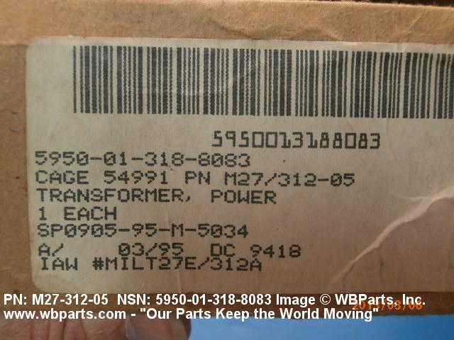 Part Alternates: M27/312-05, M2731205, MIL-T-27/312, MILT27312, 5950-01-318-8083, 01-318-8083, 5950013188083, 013188083