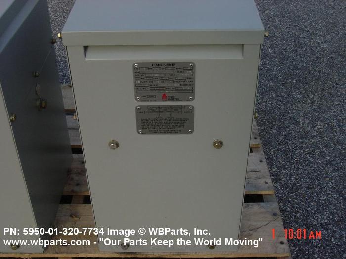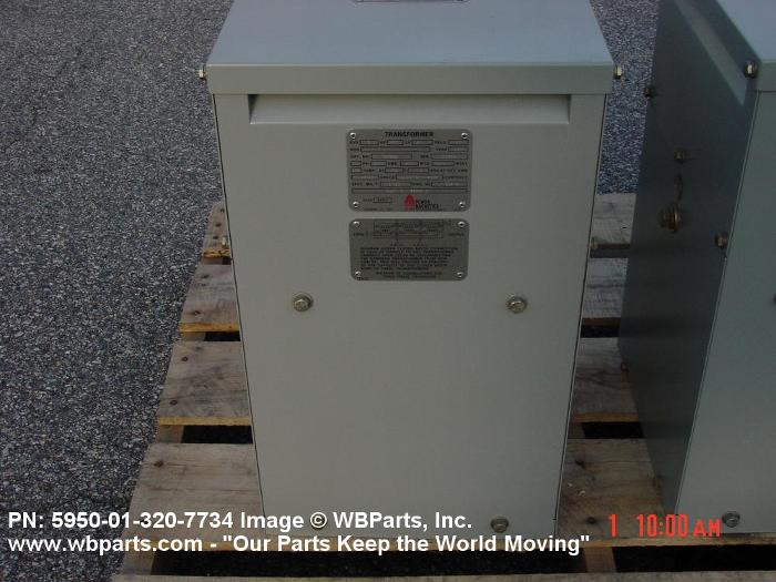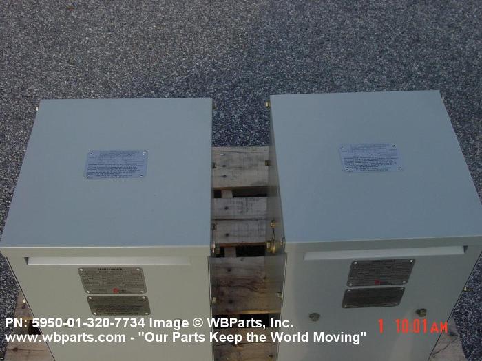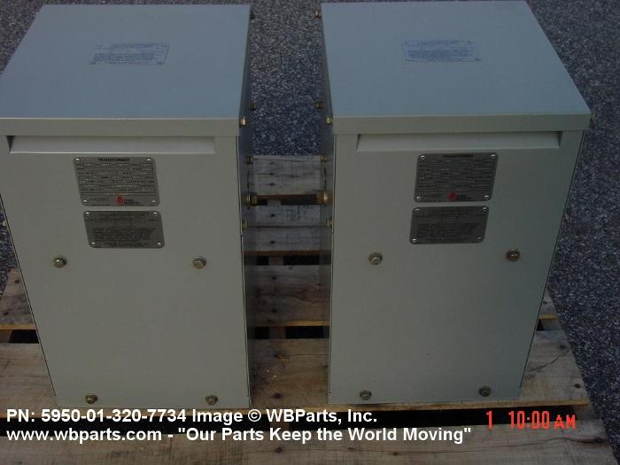 5950-01-320-7734 A transformer consisting of one or more primary winding(s) and one or more secondary winding(s). It may be designed for direct connection to an alternating current source for purposes of changing the secondary volts and amperes or designed to eliminate metallic interconnection between circuits in an overall one to one voltage ratio, with or without additional output windings, or items designed to automatically maintain a constant output voltage within specified limits under varying input or load conditions. Also includes items having a provision for mechanically changing the turns ratio or inductive coupling in progressive increments by means of voltage taps, ratio adjuster, or devices oe similar design. For transformers having winding(s) common to both input and output circuits, see TRANSFORMER (1), POWER, AUTOTRANSFORMER. Excludes TRANSFORMER (1), PULSE.20259500022Coils and Transformers61200044Transformers: Distribution and Power Station