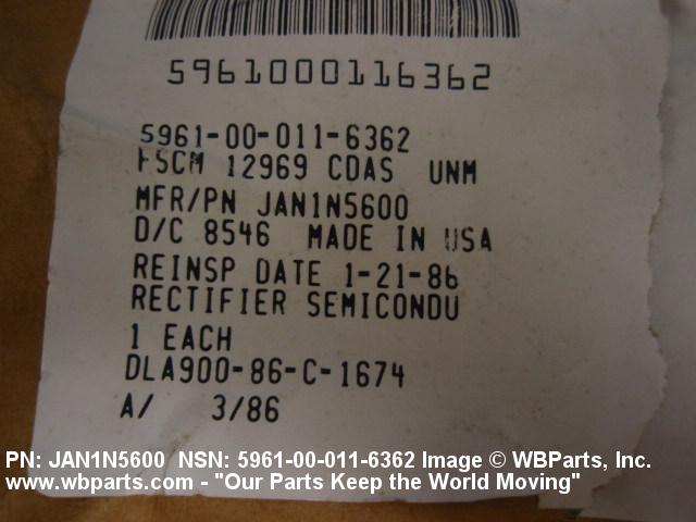 NSN 5961-00-011-6362 JAN1N5600, JAN1N5600A, MIL-PRF-19500/404