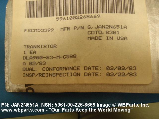 NSN 5961-00-226-8669 JAN2N651A, JAN2N651AA, MIL-S-19500/175