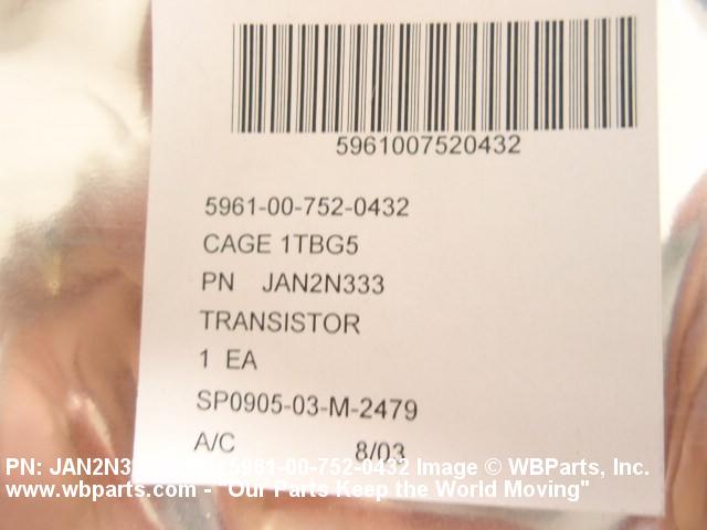 Part Alternates: JAN2N333, MIL-S-19500/37, MILS1950037, USN2N333, 12619151, 1261915-1, 2N333, 3529003000, 352-9003-000, 5961-00-752-0432, 00-752-0432, 5961007520432, 007520432
