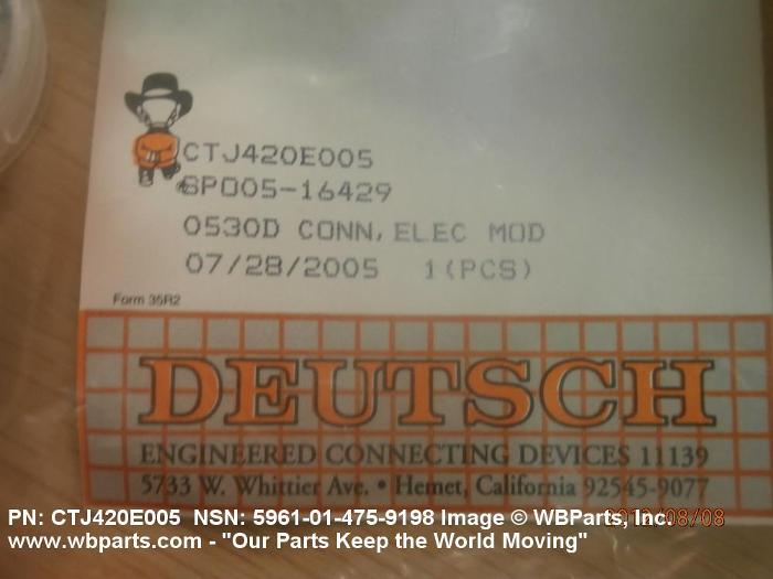 | CTJ420E005 | 11139 | DEUTSCH ENGINEERED CONNECTING DEVICES INC |
