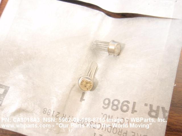 Part Alternates: M38510/10801BMB, M3851010801BMB, CA3018, CA3018A, CA3018A/3, CA3018A3 , CA3018AT/3, CA3018AT3, 11982, 3131007G001, 3867257P2, 386-7257P2, 72308953, 723089-53, 72H02N169, 5962-00-188-8715, 00-188-8715, 5962001888715, 001888715