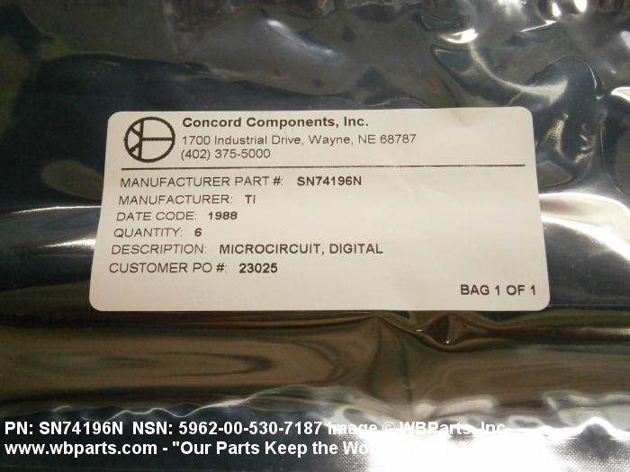 NSN 5962-00-530-7187 A3623, NTE74196, SN74196N