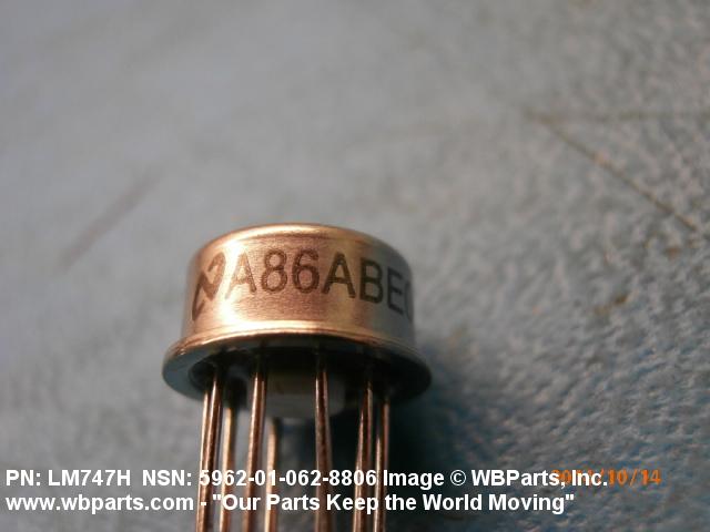 Part Alternates: M38510/10102B1X, M38510/10102BIA, M38510/101-02BIA, M38510/10102BIB, M38510/10102BIC, M38510/10102BIX, M3851010102B1X, M3851010102BIA, M3851010102BIB, M3851010102BIC, M3851010102BIX, SN26501, SN52747N, SSS747883GK, SSS747-883-GK, SSS747AK, SSS747CK, SSS747K/883 , SSS747K883, CA0747T3, CA747T, CA747T/322, CA747T322, HL27377, JANM3851010102BIX, JANM38510-10102BIX, JM3581010102BIX, JM35810-10102BIX, JM38510/10101BIA , JM38510/10101BIC , JM3851010101BIA, JM3851010101BIC, JM3851010102BIA, JM38510-10102BIA, JM3851010102BIX, JM38510-10102BIX, LM747AH, LM747EH, LM747H, U5F7747312, UA747HC , UA747HM, MIL-M-38510/101, MILM38510101, PM747K, RM747T883B, 01260251, 0126025-1, 0P04K/883 , 0P04K883, 11830792, 11830801-2, 163974, 2832826, 3517901020, 351-7901-020, 4000761403, 40-007614-03, 59623810102BIA, 5962-3810102BIA, 59623810102BIB, 5962-3810102BIB, 59623810102BIX, 5962-3810102BIX, 72H02N178 , 7411HMB, 741-1HMB, 747, 7471HMQB, 747-1HMQB, 8006388831, 800638-8831, 5962-01-062-8806, 01-062-8806, 5962010628806, 010628806, 118308012
