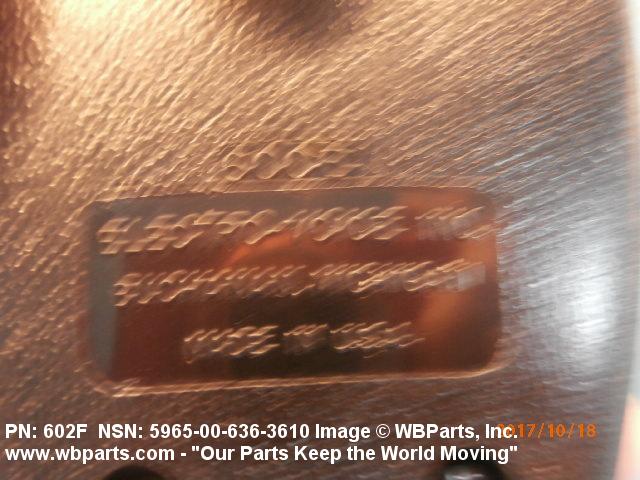 Part Alternates: G204592, G2045921, G204592-1, 6021054, 602-1054, 6021196, 602-1196, 6024641, 602-4641, 602D, 602F, 5965-00-636-3610, 00-636-3610, 5965006363610, 006363610