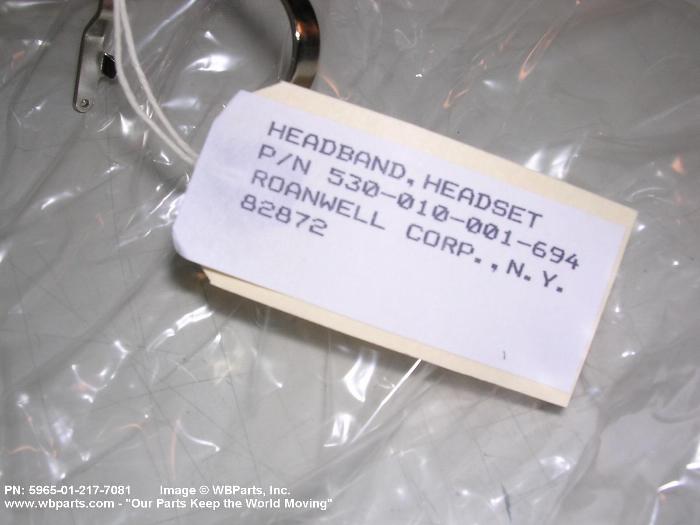 5965-01-217-7081 An item which adjusts to the head and is designed to accommodate one or more telephone receivers. It may include cords and facilities for mounting a microphone or a telephone type transmitter but does not include receivers, microphones, or transmitters. See also HEADSET, ELECTRICAL and HARNESS (as modified).