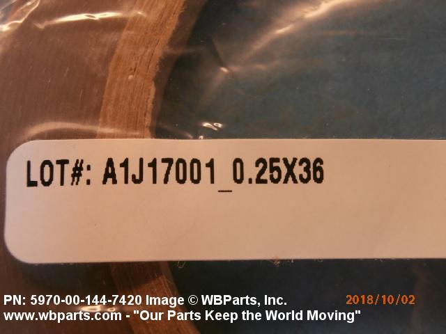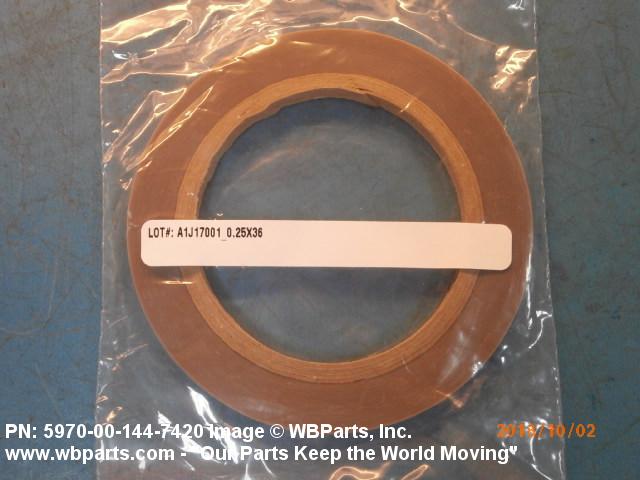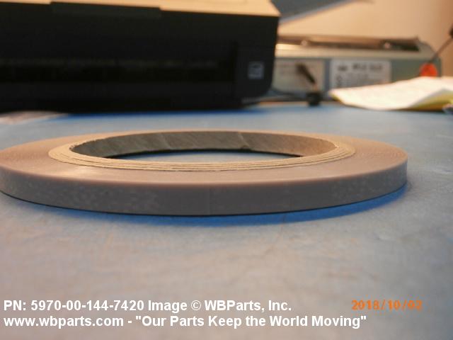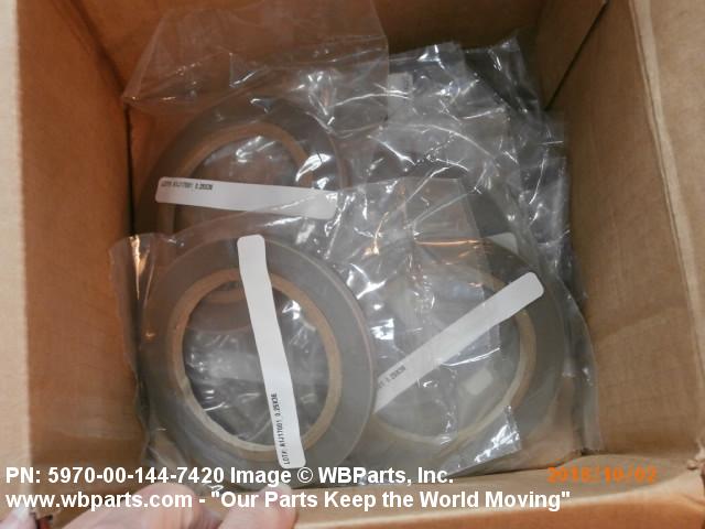 5970-00-144-7420 A narrow strip of woven or processed material less than twelve inches (304.8 mm) in width. It is specifically designed to prevent any undesirable flow of current between conductors and other objects. The item tends to resist any physical change, in contrast to an insulating compound in tape form which will fuse under a specified heat or pressure. It may or may not have adhesive backing. Excludes items not having definite rated electrical characteristics, such as TAPE, ADHESIVE, RUBBER; TAPE, PRESSURE SENSITIVE ADHESIVE; TAPE, SEMI-CONDUCTING, ELECTRICAL; and TAPE, SHIELDING, ELECTRICAL. See also INSULATION CLOTH, ELECTRICAL and INSULATING COMPOUND, ELECTRICAL.