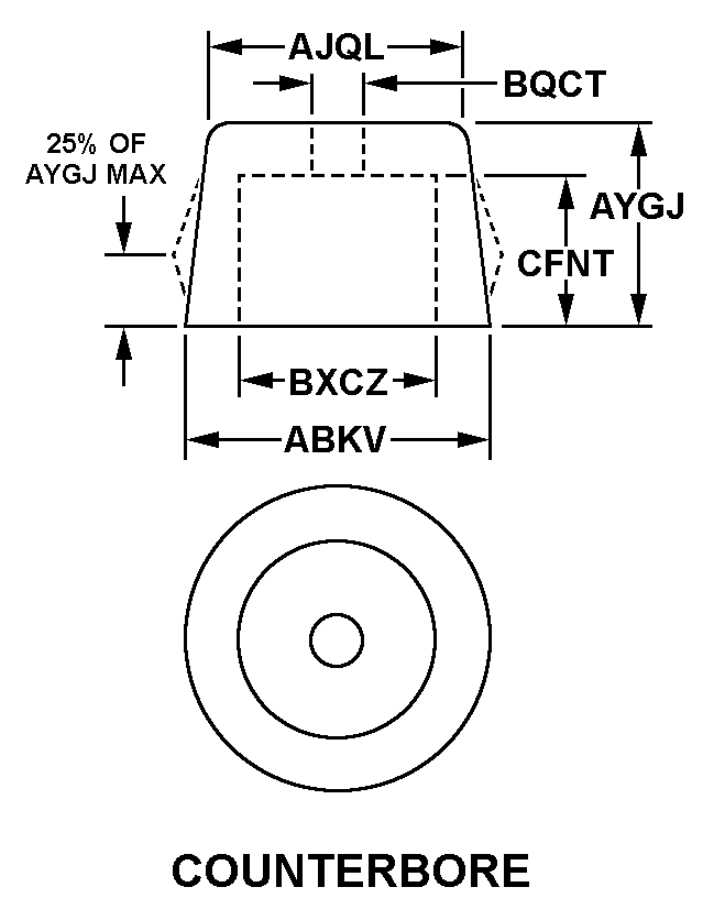 | FIRST COUNTERBORE DEPTH | 0.250 INCHES NOMINAL |