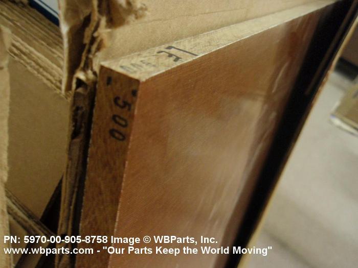 5970-00-905-8758 A material whose thickness is small in comparison to its length and width, and which is specifically designed to prevent any undesirable flow of current between a conductor(s) and/or other objects. Excludes items which do not have definite rated electrical characteristics. Excludes INSULATION CLOTH, ELECTRICAL; INSULATION TAPE, ELECTRICAL and PLASTIC SHEET. For electrical insulation sheets fabricated for a specific application, see INSULATOR (as modified).