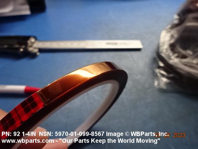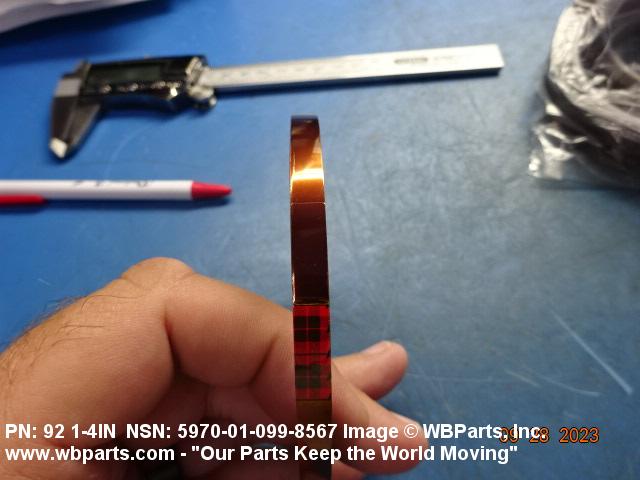 5970-01-099-8567 A narrow strip of woven or processed material less than twelve inches (304.8 mm) in width. It is specifically designed to prevent any undesirable flow of current between conductors and other objects. The item tends to resist any physical change, in contrast to an insulating compound in tape form which will fuse under a specified heat or pressure. It may or may not have adhesive backing. Excludes items not having definite rated electrical characteristics, such as TAPE, ADHESIVE, RUBBER; TAPE, PRESSURE SENSITIVE ADHESIVE; TAPE, SEMI-CONDUCTING, ELECTRICAL; and TAPE, SHIELDING, ELECTRICAL. See also INSULATION CLOTH, ELECTRICAL and INSULATING COMPOUND, ELECTRICAL.