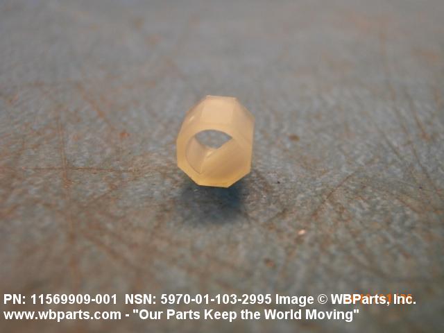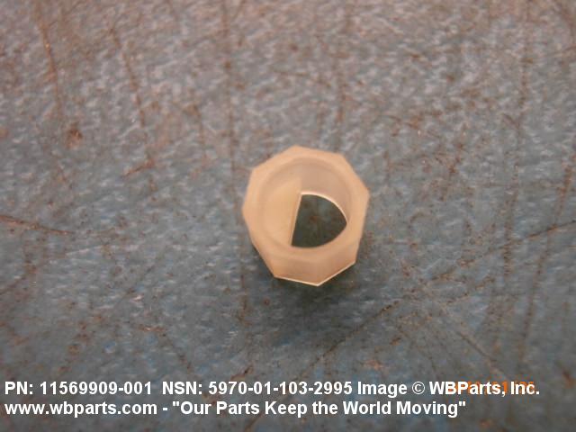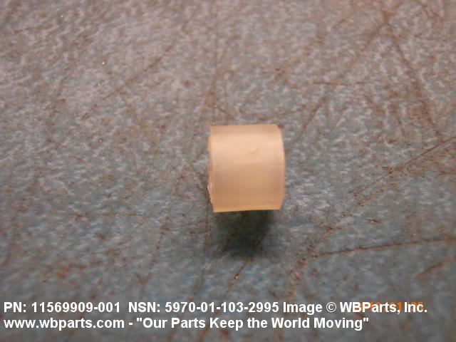 5970-01-103-2995 An insulator designed to fit into and reduce the effective diameter of the hole(s). It may include mounting and/or conducting hardware. For flexible bushing-type insulators that are self-retaining and consist of two facing flanges separated by a neck, see GROMMET, NONMETALLIC. Also see SPACER, SLEEVE and BUSHING, SLEEVE. Excludes INSULATION SLEEVING, ELECTRICAL.