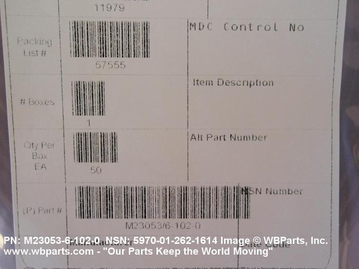 NSN 5970-01-262-1614 M23053/6-102-0, M2305361020, AMS-DTL-23053/6