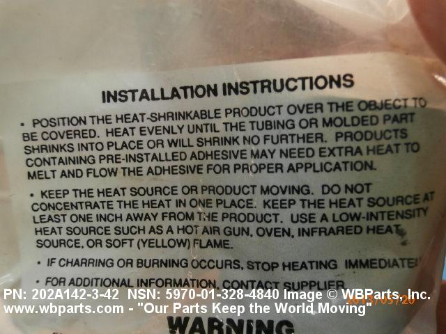 5970-01-328-4840 A rigid or flexible tubing having other than uniform fabricated shapes or forms. It is specifically designed to prevent any undesirable flow of current between conductors or between conductors and other objects. Includes shrinkable type items. Excludes items not having rated electrical characteristics. Also excludes BUSHING, SLEEVE; CABLE NIPPLE, ELECTRICAL; and INSULATION SLEEVING, ELECTRICAL.