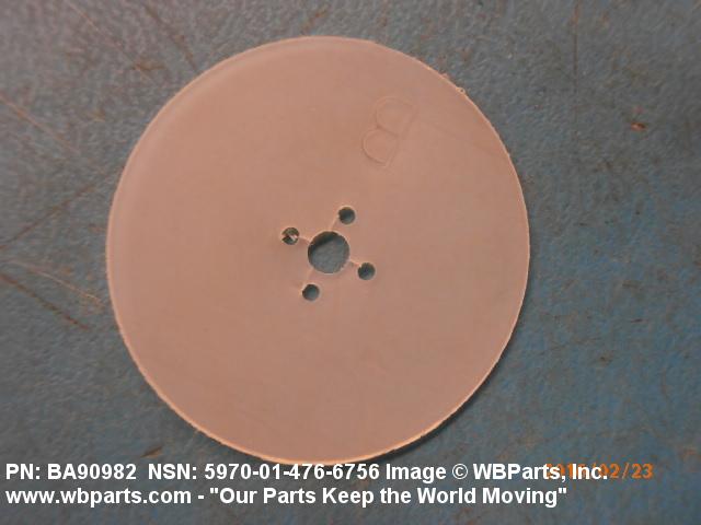 5970-01-476-6756 An insulator that is essentially thin, flat, and round in shape, with or without holes. The general shape may vary by the addition of such features as beveled edges, indented surfaces, through-hole key and/or peripheral flats. It may have one or more holes off center; if there are two or more holes, one may be centrally located. Excludes MOUNTING PAD, ELECTRICAL-ELECTRONIC COMPONENT.