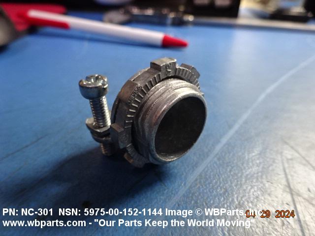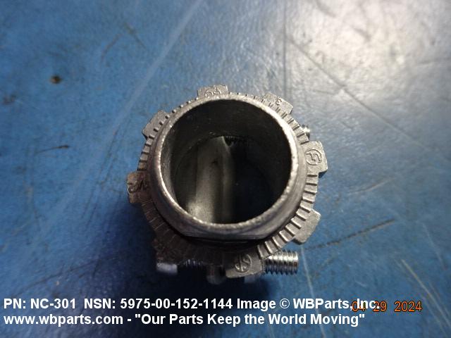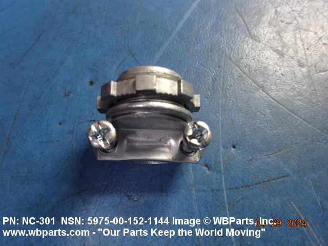5975-00-152-1144 An item designed to mechanically connect in a straight line or an angle electrical conduit, conduit assemblies, wire, wireway, cable, or cable assemblies to a point of termination, such as a junction box, conduit outlet, or the like. The termination end must have an external thread with a boss or shoulder and may be furnished with a locknut or bondnut; or, must have internal thread with which is furnished an externally threaded hub with a wrenching feature; or be of a snap-in type that may be installed from either inside or outside the box and secured with a captive screw. It is not intended to join conduit to conduit. For angle type items having a male thread without a boss or shoulder, see ELBOW, ELECTRICAL CONDUIT. Does not include facilities to mount wiring devices. Excludes CHASE NIPPLE, CONDUIT.