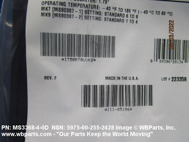 NSN 5975-00-255-2428 MS336840D, MS3368-4-0D, MS336842D