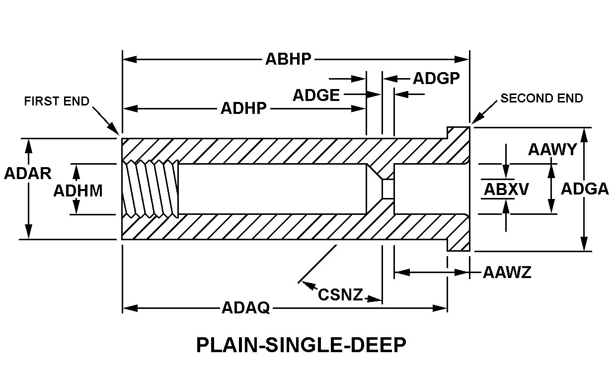 | NOMINAL THREAD SIZE | 1.000 INCHES FIRST END |
