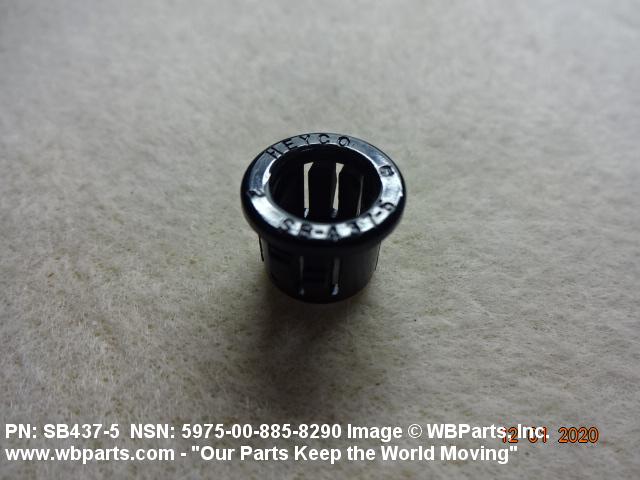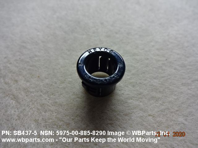 5975-00-885-8290 An item of metal and/or insulating material having a smooth interior with rounded edges to prevent damage to the insulation of the wire or cable emerging there-from, designed to fit through panel(s) or the wall of a JUNCTION BOX. It may be designed to snap into a knockout hole, or designed with an external thread and furnished with or without a locking nut. For items designed to couple conduit to JUNCTION BOX, see BOX CONNECTOR, ELECTRICAL. See also BUSHING, ELECTRICAL CONDUIT and BUSHING, NONMETALLIC. For items having hexagonal shoulders, see CHASE NIPPLE, CONDUIT.