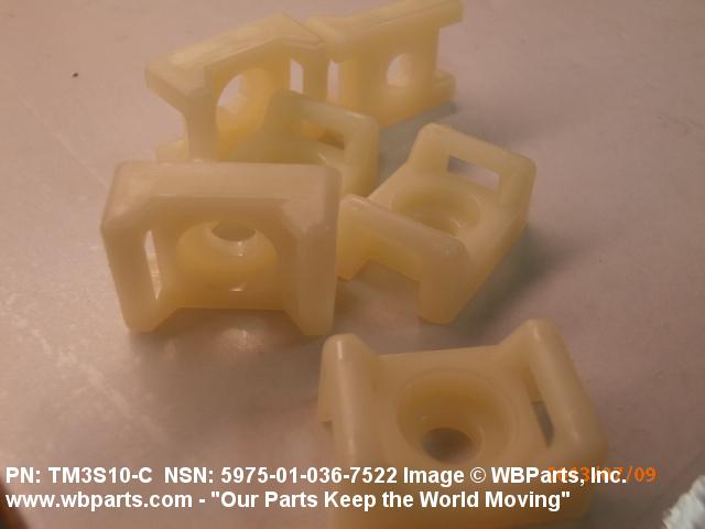 5975-01-036-7522 An item used in conjunction with STRAP, TIEDOWN, ELECTRICAL COMPONENTS to secure wire(s) or cable(s) to a supporting surface.