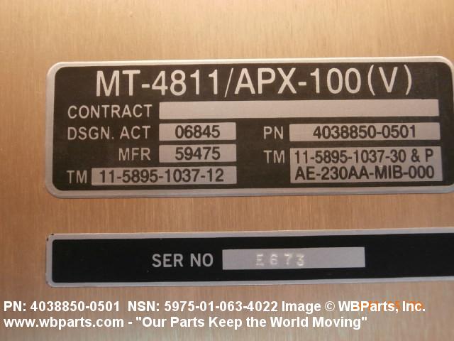 Part Alternates: MT-4811/APX-100V, MT4811APX100V, 706A35402124, 706A35-402-124, 40388500501, 4038850-0501, 5975-01-063-4022, 01-063-4022, 5975010634022, 010634022