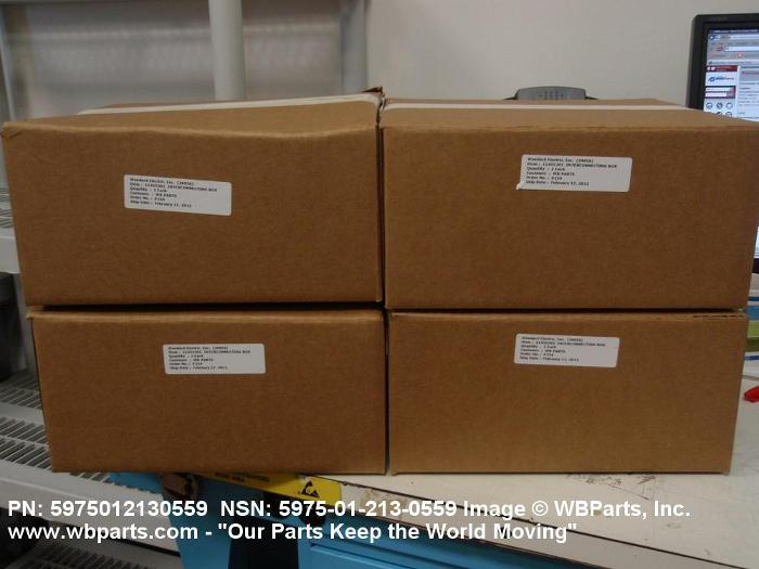 5975-01-213-0559 An inclosure which includes mounts and protects such items as switches, circuit breakers, jacks, fuseholders, connectors, terminals and/or terminal boards, resistors, capacitors, transformers, and the like. It is primarily designed to interconnect two or more electrical and/or electronic items, except primary power source(s) such as generator(s) and battery(ies). It may include a cover or door. For inclosures which connect one or more primary power source(s) to one or more electrical and/or electronic item(s), see DISTRIBUTION BOX. See also CIRCUIT BREAKER BOX; TERMINAL BOX and INTERCONNECTING CABINET.20549200058Aircraft Maintenance and Repair Shop Specialized Equipment58950037Miscellaneous Communication Equipment59750032Electrical Hardware and Supplies60990036Miscellaneous Fiber Optic Components66250070Electrical and Electronic Properties Measuring and Testing Instruments