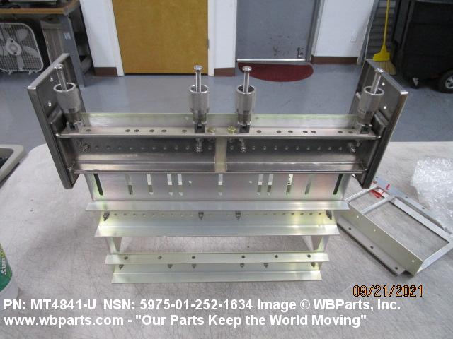 5975-01-252-1634 A tray or racklike item designed to provide a supporting surface to which electrical/electronic equipment may be secured when installed in aircraft, vehicles, or other types of mobile equipment. It may be equipped with shock or vibration isolation devices and/or wires, cables, terminal boards, connectors, etc. Excludes BASE, ELECTRICAL EQUIPMENT RACK and MOUNT, RESILIENT. See also RACK, ELECTRICAL EQUIPMENT.