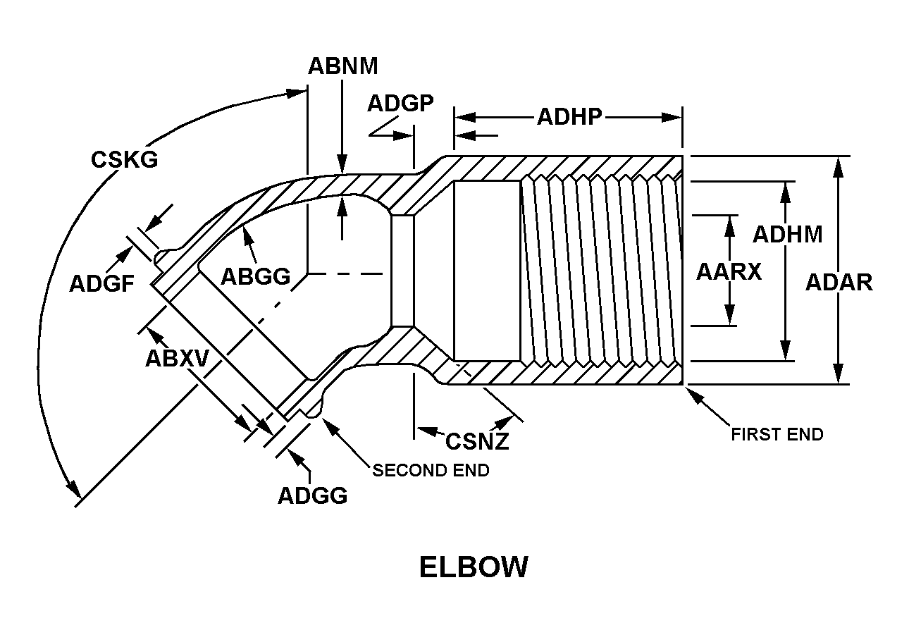 | BEND ANGLE | 45.0 DEGREES NOMINAL |