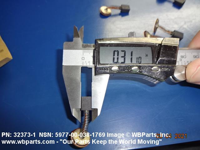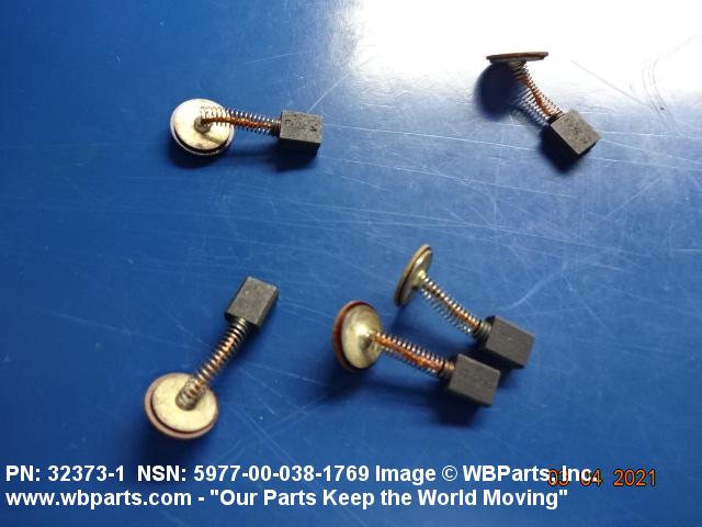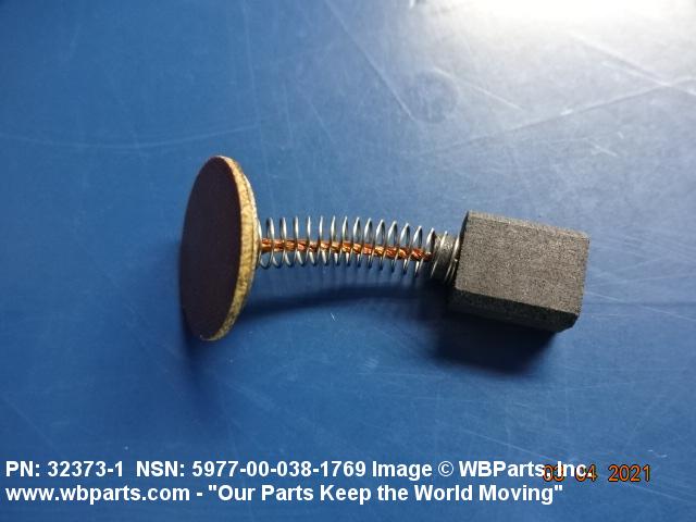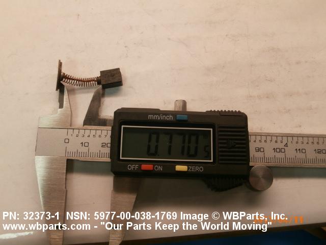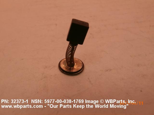 5977-00-038-1769 An item specifically designed to be used in the transfer of electrical energy to or from another conducting surface. Either the brush or the surface is continually moving during the transfer of energy. The brush is usually composed in part of some form of the element carbon. Includes: (1) a single brush either with or without an attached shunt (flexible wire lead) and/or a helical or flat type pressure spring; (2) a split brush composed of two or more pieces (wafers), which are used in place of one brush usually connected together by individual shunts to a common terminal; (3) paired brushes composed of two identical or non-identical brushes connected together by a common shunt either with or without pressure springs or connected by individual shunts to a common terminal, or with pressure springs and connected to a common bar, bracket or the like either with or without individual shunts; (4) multiple brushes composed of more than two identical or non-identical brushes without pressure springs connected by individual shunts to a common terminal, or with pressure springs and connected to a common bar, bracket or the like by individual shunts. Does not include moving contacts which make and slide past stationary contacts, but are stationary while the circuit is conducting, such as the sliding contacts on a rheostat or the stationary contact on a synchro. Excludes: CONTACT, ELECTRICAL; and CONTACT ASSEMBLY, ELECTRICAL.