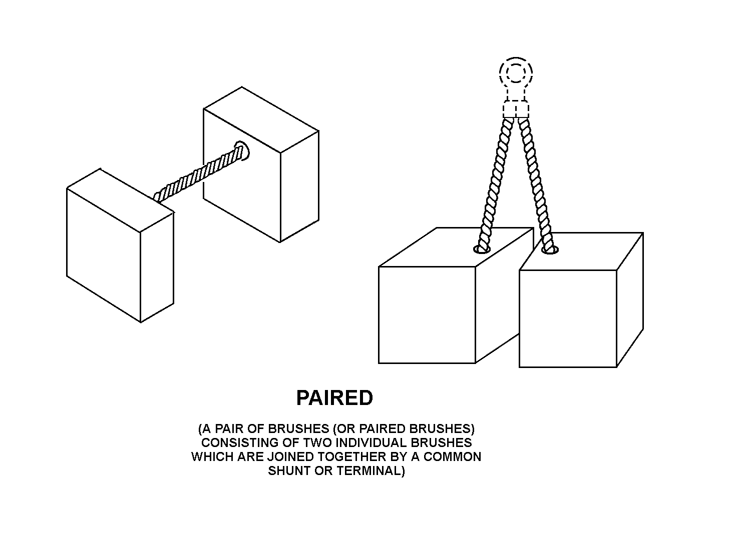 5977-01-062-0873 An item specifically designed to be used in the transfer of electrical energy to or from another conducting surface. Either the brush or the surface is continually moving during the transfer of energy. The brush is usually composed in part of some form of the element carbon. Includes: (1) a single brush either with or without an attached shunt (flexible wire lead) and/or a helical or flat type pressure spring; (2) a split brush composed of two or more pieces (wafers), which are used in place of one brush usually connected together by individual shunts to a common terminal; (3) paired brushes composed of two identical or non-identical brushes connected together by a common shunt either with or without pressure springs or connected by individual shunts to a common terminal, or with pressure springs and connected to a common bar, bracket or the like either with or without individual shunts; (4) multiple brushes composed of more than two identical or non-identical brushes without pressure springs connected by individual shunts to a common terminal, or with pressure springs and connected to a common bar, bracket or the like by individual shunts. Does not include moving contacts which make and slide past stationary contacts, but are stationary while the circuit is conducting, such as the sliding contacts on a rheostat or the stationary contact on a synchro. Excludes: CONTACT, ELECTRICAL; and CONTACT ASSEMBLY, ELECTRICAL.