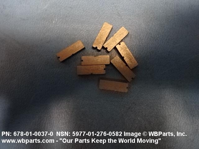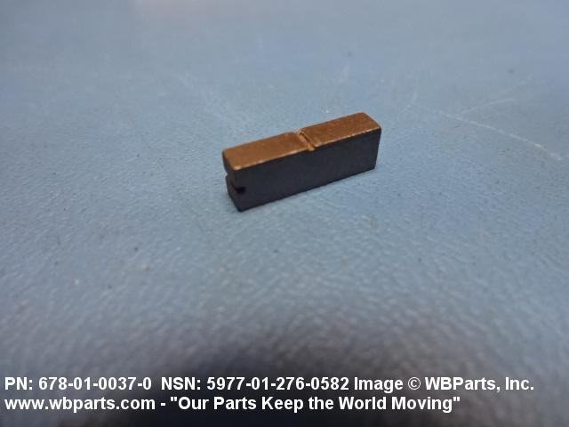 5977-01-276-0582 An item specifically designed to be used in the transfer of electrical energy to or from another conducting surface. Either the brush or the surface is continually moving during the transfer of energy. The brush is usually composed in part of some form of the element carbon. Includes: (1) a single brush either with or without an attached shunt (flexible wire lead) and/or a helical or flat type pressure spring; (2) a split brush composed of two or more pieces (wafers), which are used in place of one brush usually connected together by individual shunts to a common terminal; (3) paired brushes composed of two identical or non-identical brushes connected together by a common shunt either with or without pressure springs or connected by individual shunts to a common terminal, or with pressure springs and connected to a common bar, bracket or the like either with or without individual shunts; (4) multiple brushes composed of more than two identical or non-identical brushes without pressure springs connected by individual shunts to a common terminal, or with pressure springs and connected to a common bar, bracket or the like by individual shunts. Does not include moving contacts which make and slide past stationary contacts, but are stationary while the circuit is conducting, such as the sliding contacts on a rheostat or the stationary contact on a synchro. Excludes: CONTACT, ELECTRICAL; and CONTACT ASSEMBLY, ELECTRICAL.