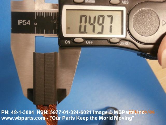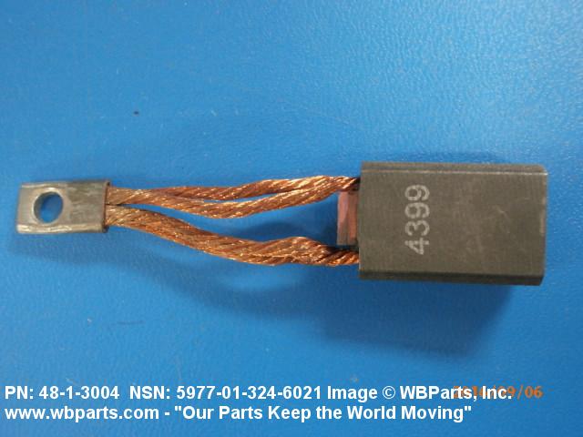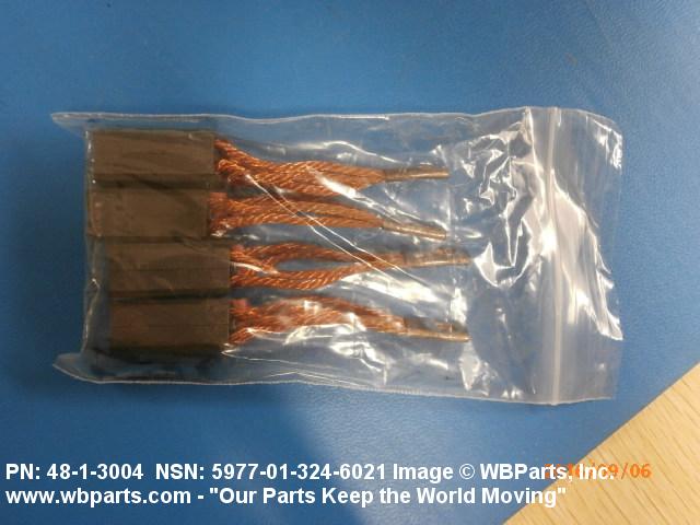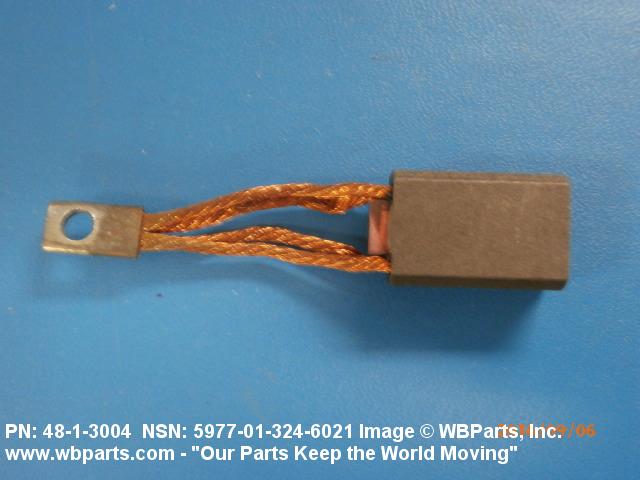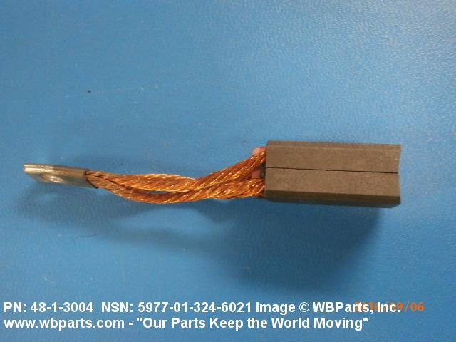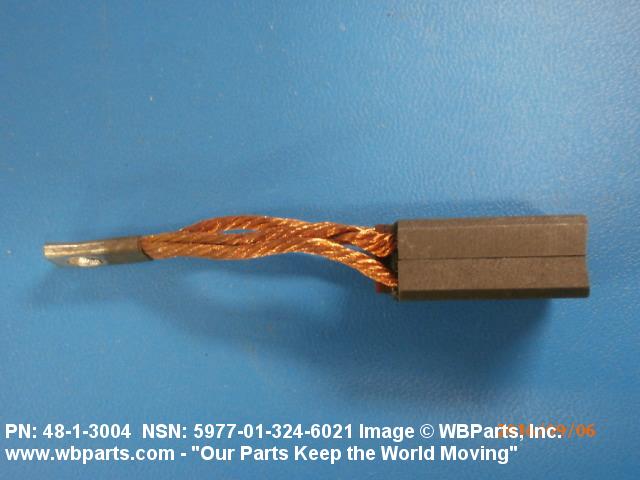 5977-01-324-6021 An item specifically designed to be used in the transfer of electrical energy to or from another conducting surface. Either the brush or the surface is continually moving during the transfer of energy. The brush is usually composed in part of some form of the element carbon. Includes: (1) a single brush either with or without an attached shunt (flexible wire lead) and/or a helical or flat type pressure spring; (2) a split brush composed of two or more pieces (wafers), which are used in place of one brush usually connected together by individual shunts to a common terminal; (3) paired brushes composed of two identical or non-identical brushes connected together by a common shunt either with or without pressure springs or connected by individual shunts to a common terminal, or with pressure springs and connected to a common bar, bracket or the like either with or without individual shunts; (4) multiple brushes composed of more than two identical or non-identical brushes without pressure springs connected by individual shunts to a common terminal, or with pressure springs and connected to a common bar, bracket or the like by individual shunts. Does not include moving contacts which make and slide past stationary contacts, but are stationary while the circuit is conducting, such as the sliding contacts on a rheostat or the stationary contact on a synchro. Excludes: CONTACT, ELECTRICAL; and CONTACT ASSEMBLY, ELECTRICAL.