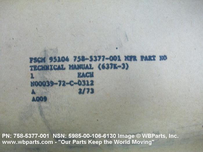 | 758-5377-001 | 13499 | ROCKWELL COLLINS, INC. DBA GOVERNMENT SYSTEMS |