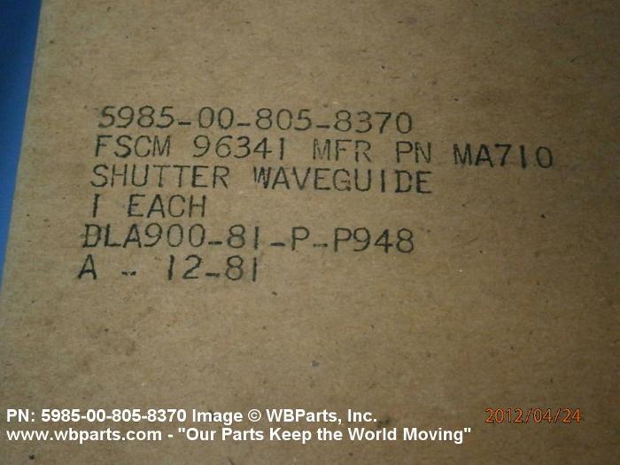 | 59 | 01 JAN 1962 | 00-805-8370 | 02035 ( SHUTTER, WAVEGUIDE ) |