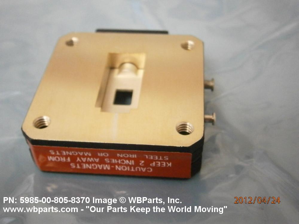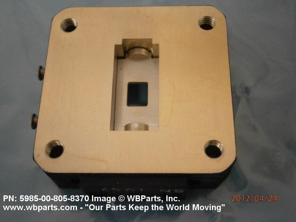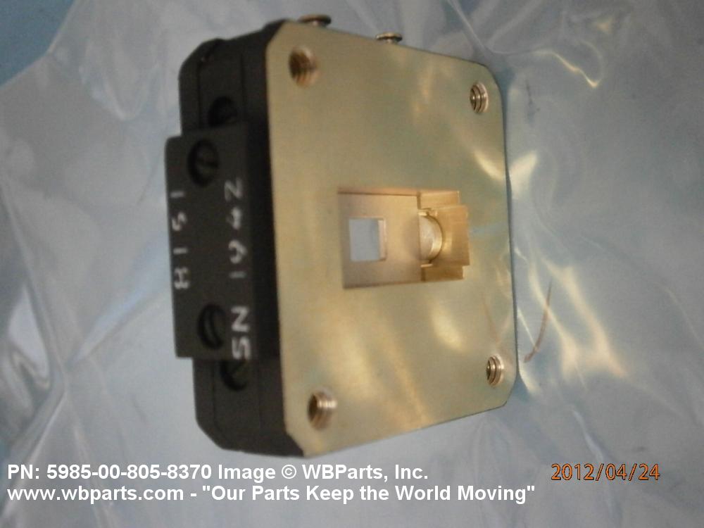 5985-00-805-8370 A waveguide section which contains a switching device to permit the interruption or diversion of the radio frequency energy by means of a mechanical barrier.
