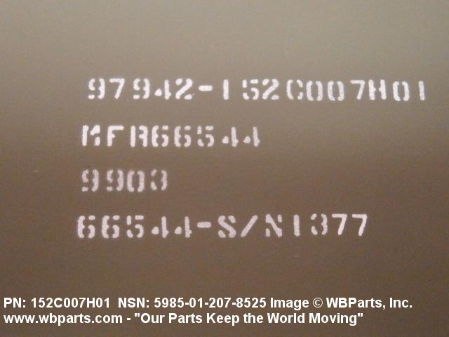 Part Alternates: 152C007H01, 4524951, 452495-1, 5985-01-207-8525, 01-207-8525, 5985012078525, 012078525