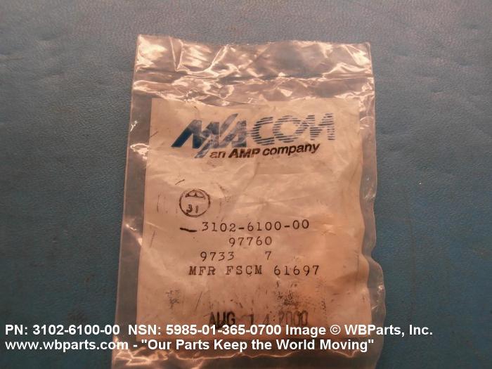 | 3102-6100-00 | 96341 | COBHAM ELECTRONIC SYSTEMS INC. DBA COBHAM DEFENSE ELECTRONICS |
