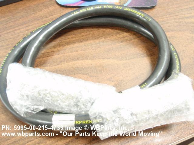 5995-00-215-4733 A definite continuous length of CABLE, SPECIAL PURPOSE, ELECTRICAL, having one or more ends processed or terminated in fittings which provide for connection to other items. Excludes items having branches or forks. Excludes LEAD, TEST and CABLE AND CONDUIT ASSEMBLY, ELECTRICAL.20611350043Fuzing and Firing Devices, Nuclear Ordnance11900057Specialized Test and Handling Equipment, Nuclear Ordnance132500004935000059950057Cable, Cord, and Wire Assemblies: Communication Equipment61500055Miscellaneous Electric Power and Distribution Equipment