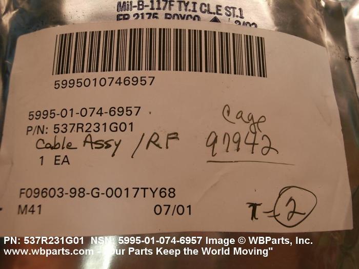 NSN 5995-01-074-6957 537R231G01, 01-074-6957, 010746957