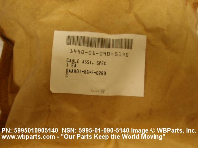5995-01-090-5140 A definite continuous length of CABLE, SPECIAL PURPOSE, ELECTRICAL with branches (forks), and having one or more ends processed and/or terminated in fittings to provide for connection to other items. Excludes LEAD, TEST. See also wiring harness.20611050013Nuclear Bombs11150037Nuclear Warheads and Warhead Sections11350043Fuzing and Firing Devices, Nuclear Ordnance11900057Specialized Test and Handling Equipment, Nuclear Ordnance59950057Cable, Cord, and Wire Assemblies: Communication Equipment61500055Miscellaneous Electric Power and Distribution Equipment
