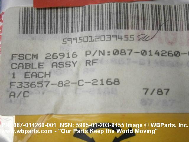 Part Alternates: 087014260001, 087-014260-001, 5995-01-203-9455, 01-203-9455, 5995012039455, 012039455